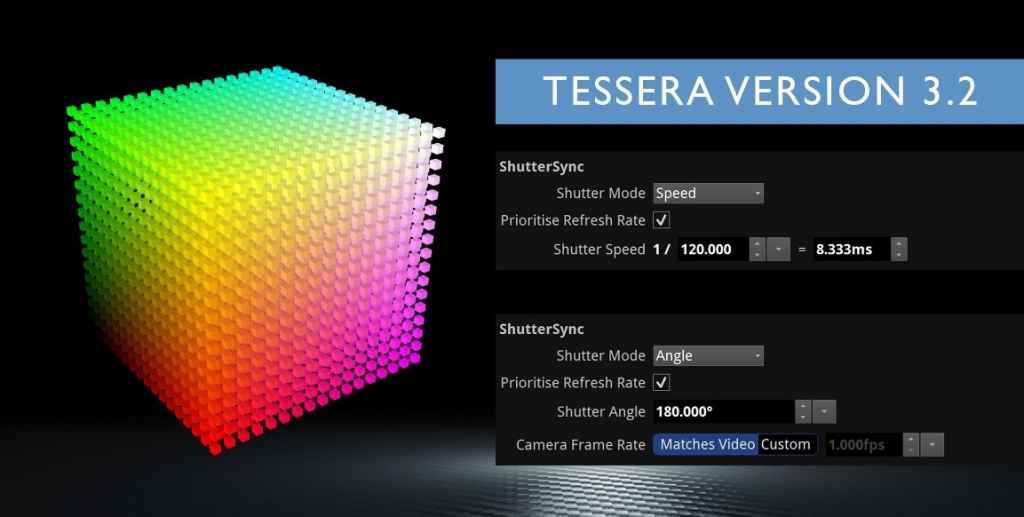 Tessera v3.2 is designed for using LED on camera for virtual production and XR applications, using the ShutterSync tool to allow LED refresh to be tuned to the camera.