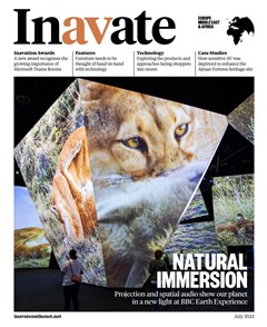 The front cover star is The BBC Earth Experience in London featuring huge projection surfaces of nature content, there is also a piece looking at the technologies retailers are employing to get people into stores, and analysis of why the use of specialist AV furniture is so vital to the success of modern workplaces.