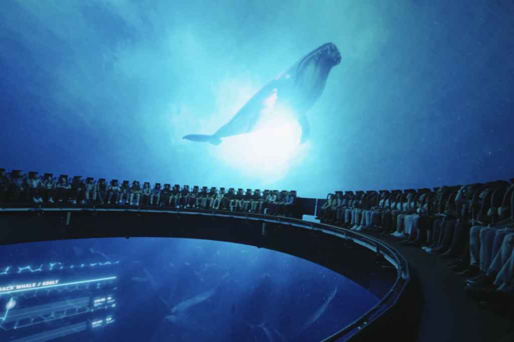 Spanning 17m in diameter, the spinning and tilting ride is within a fully covered LED sphere featuring 75 million pixels, providing an uninterrupted 360-degree view in any direction for each attendee. The ride allows visitors to explore the ocean’s depths and to swim through the world’s seas on a fully rotating and tilting ring, supporting the illusion the sphere is gliding through the seas.