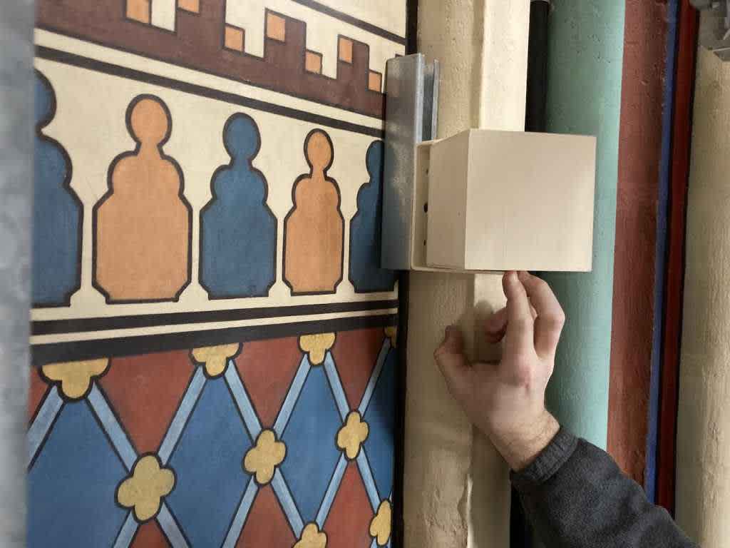 Mechanically, mounting was as critical as signal flow. Drilling into stone was rarely permitted. Créteur describes the workaround: “We therefore used a sliding primary support system, which offered two key advantages: it allowed us to have it installed in coordination with the masonry company - the only party authorised to drill - and it enabled us to slide the final loudspeaker mounts into the exact height position required.”