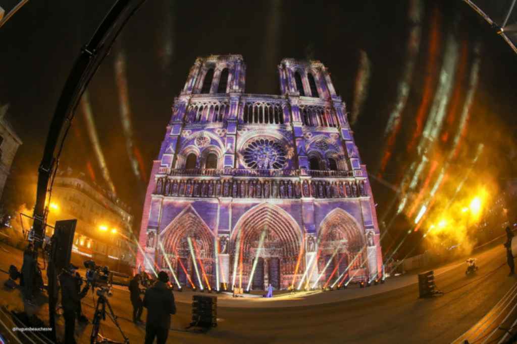 Power distribution posed its own challenge. Magnum and Magnum Power positioned seven power generators on a barge on the river Seine, which runs next to the cathedral, providing uninterrupted electricity for all equipment during the reopening show.