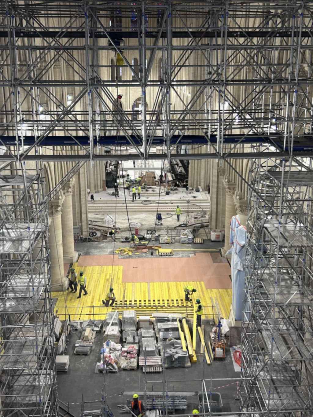The constraints were structural, acoustic, environmental and political. No visible cabling, no intrusive fixings, strict heritage oversight. Lead contamination protocols limited access, schedules were compressed, and severe weather had to be contended with during the reopening period. The solution had to be technically advanced but visually absent, as David Créteur, project manager at Groupe Novelty and one of the project leads, says: “nothing should be seen, yet everything must be perfectly heard”.