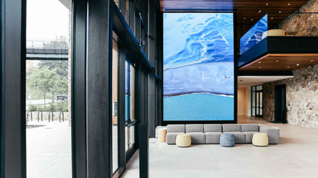 Located within the University’s new Contemplative Commons in Charlottesville, the Contemplative Sciences Center creates opportunities that centre mind-body practices for well-being, insight and compassion in all aspects of life – social, emotional, physical and professional. The first-floor lobby exemplifies that mission with cinematography displayed on a floor-to-ceiling Planar DirectLight Ultra Series LED videowall.