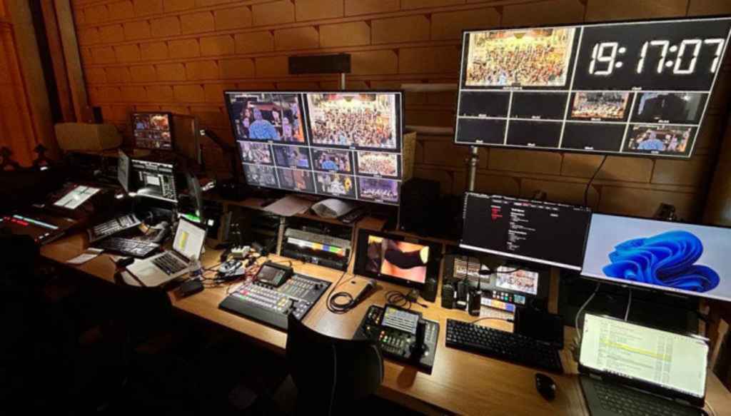 A dual spine-leaf network topology supports both audio and visual workflows and utilises industry-standard protocols such as Milan-AVB, Dante and NDI for low-latency transmission.