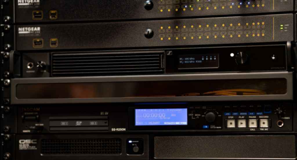 The Spectera Base Station occupies a single rack unit while supporting up to 32 microphone channels and 16 stereo IEMs. In a building where technical racks must remain compact and discreet, that density matters. A conventional narrowband configuration offering equivalent channel capacity would have required significantly more rack space and higher power consumption.