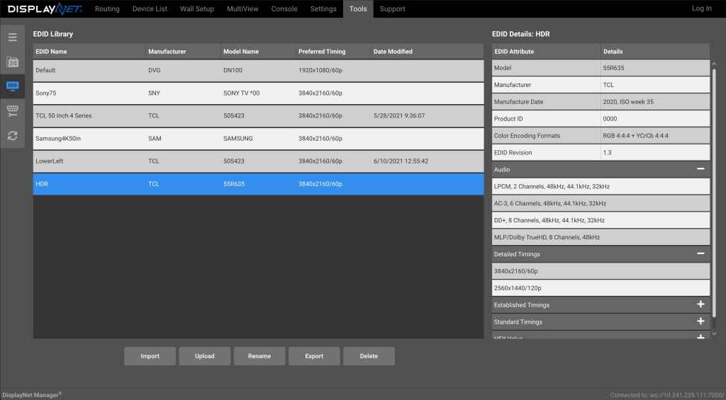 The update includes enhancements to DisplayNet’s EDID management functionality, as well as two kinds of recallable presets: scripts and snapshots.