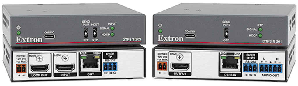 Extron has launched its DTP3 series, a 4K/60 HDMI product series comprised of the DTP3 T 202 transmitter and DTP3 R 201 receiver, providing signal extension of HDMI and bidirectional RS-232 signals up to 100 metres over Extron’s XTP DTP 22 shielded twisted pair cable.