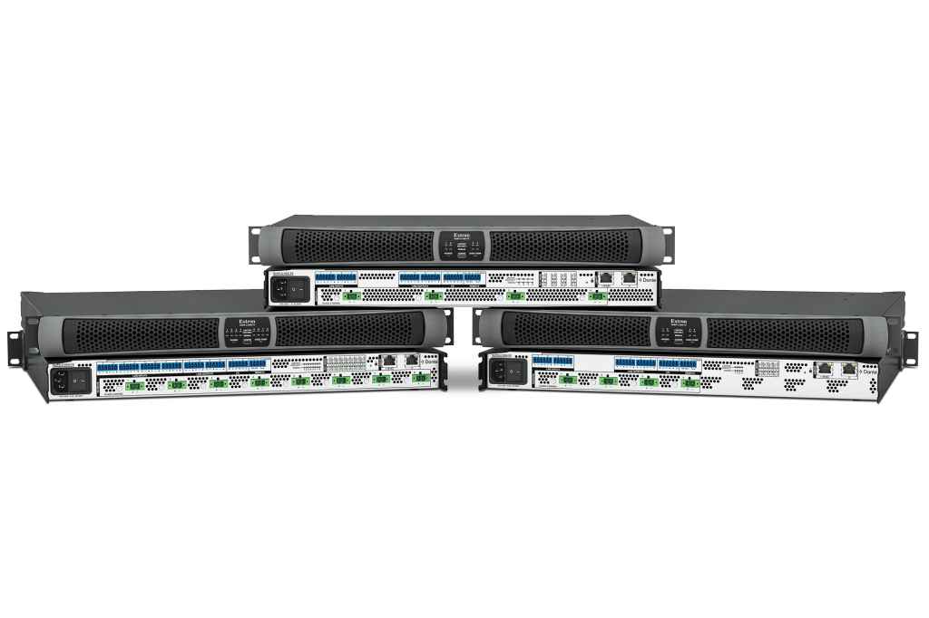 Extron has introduced the NetPA Ultra FX Series eight and four channel configurable output audio power amplifiers with Dante connectivity and audio DSP.