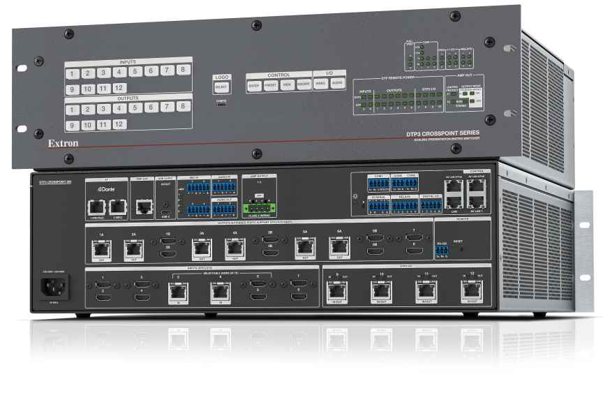Extron has announced the immediate availability of the full line of DTP3 CrossPoint Series configurable presentation matrix switchers.