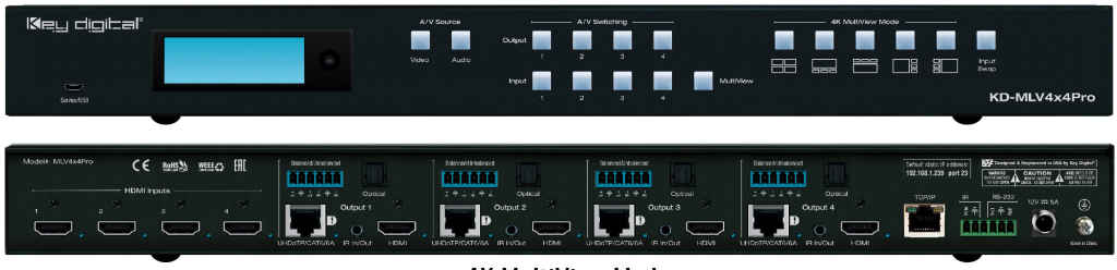 Key Digital has introduced the KD-MLV4x4Pro 4x4 4K UHD HDMI multi-view tiling processor with seamless matrix switching.