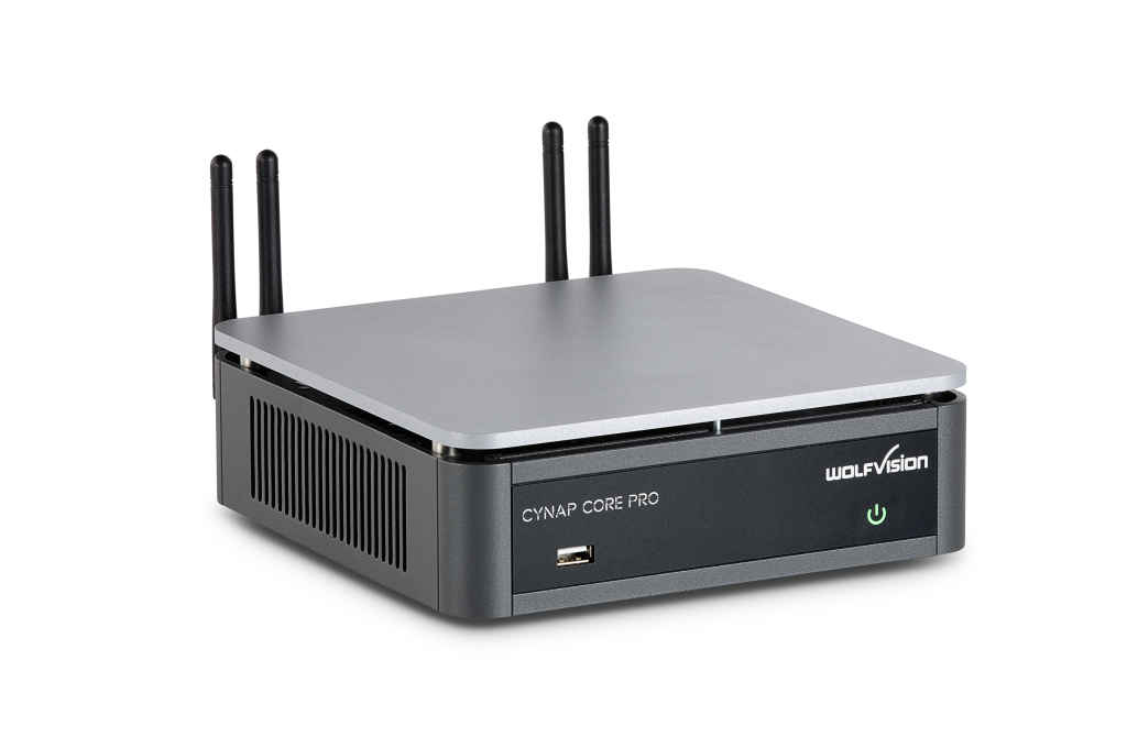 An optional lecture capture feature pack enables operation as a capture agent for Panopto, and other compatible video management platforms, and multiple Cynap Core Pro units can also be used as client devices as part of WolfVision’s vSolution MATRIX networked-AV multi-screen collaboration solution.